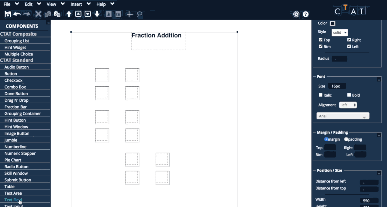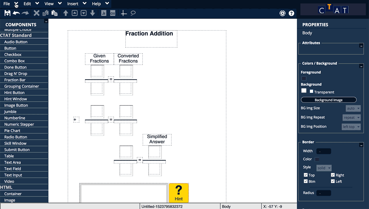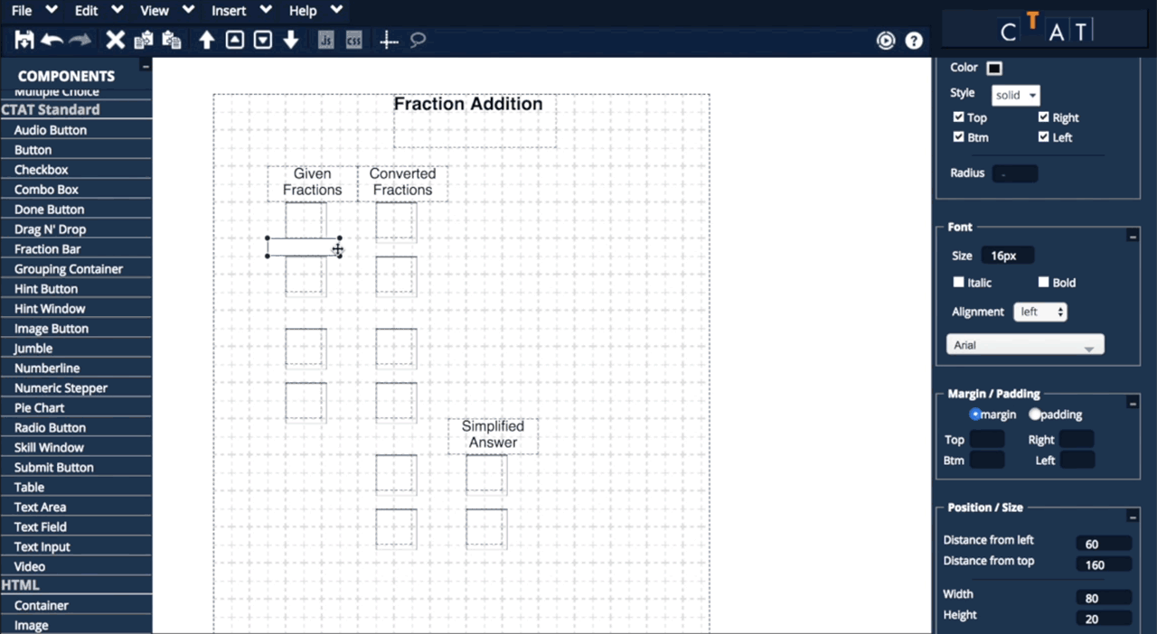 In this tutorial, you will create a student interface for solving fraction addition problems using the CTAT HTML Editor.